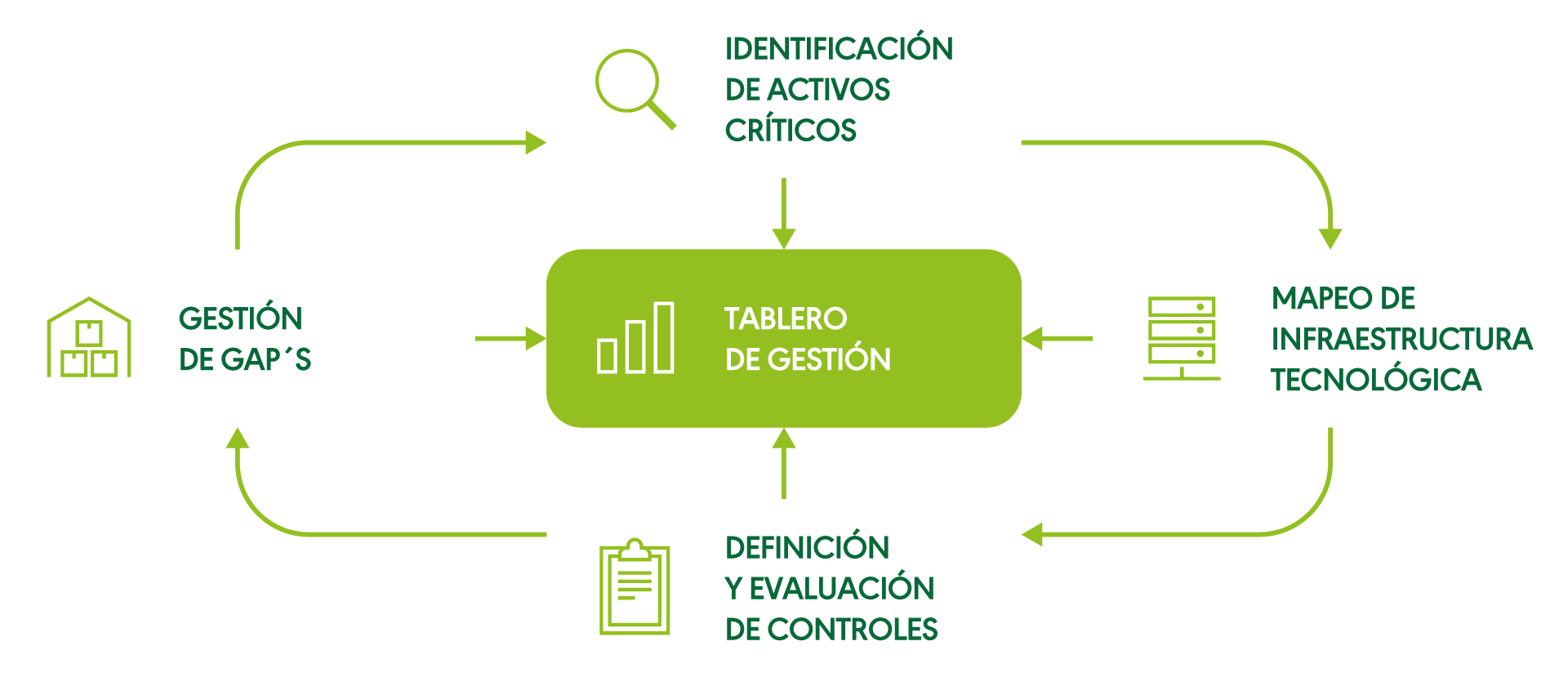 Es una solución que permite Documentar y Gestionar el Nivel de Madurez de la Ciberseguridad para asegurar la Disponibilidad, Integridad y Confidencialidad de los activos de información críticos de la Organización.